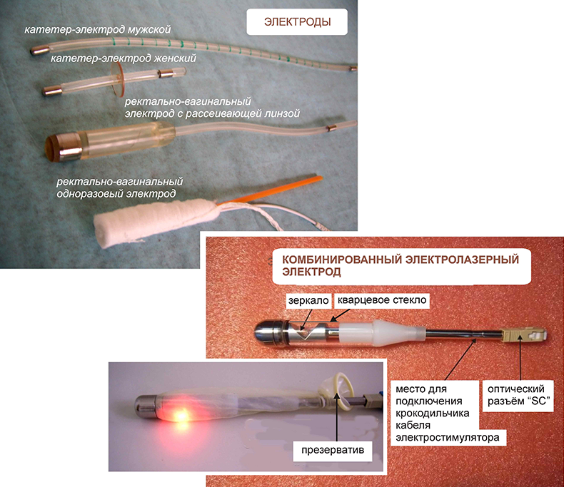 лазерное излучение подводится по оптическому модулю-смесителю, что позволяет не ограничивать мощность излучения (в отличие от похожего электрода со встроенным в него маломощным лазером, например, в аппарате «Андро-Гин»).