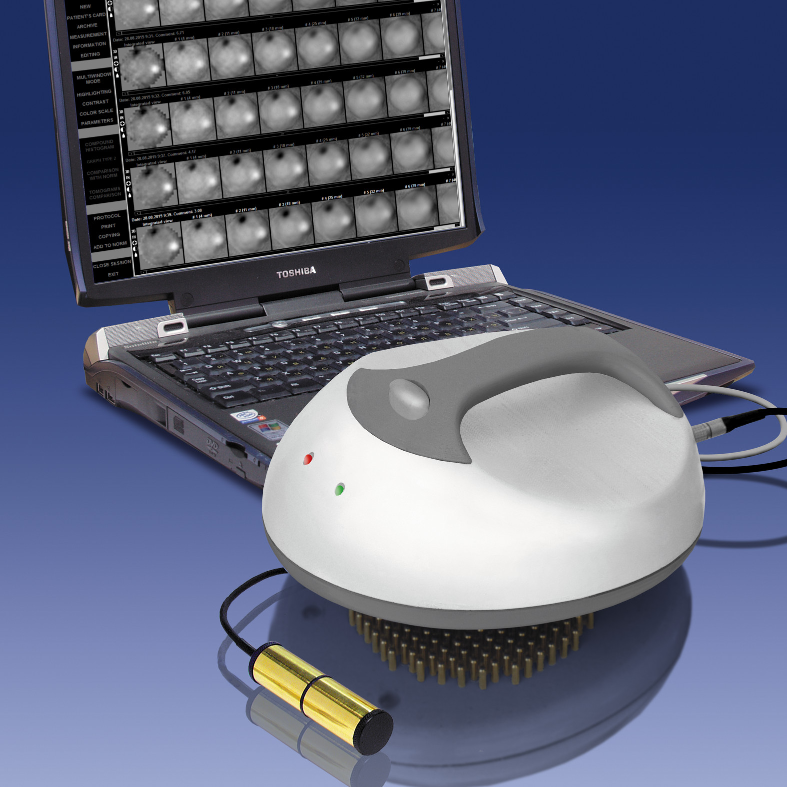 Электроимпедансный маммограф МЭИК MEIK v.5.6 представляет собой устройство для визуализации, использующее неинвазивную технологию измерения электромагнитных свойств тканей. Прибор осуществляет наружное сканирование и регистрирует изменения электрической проводимости в тканях организма.