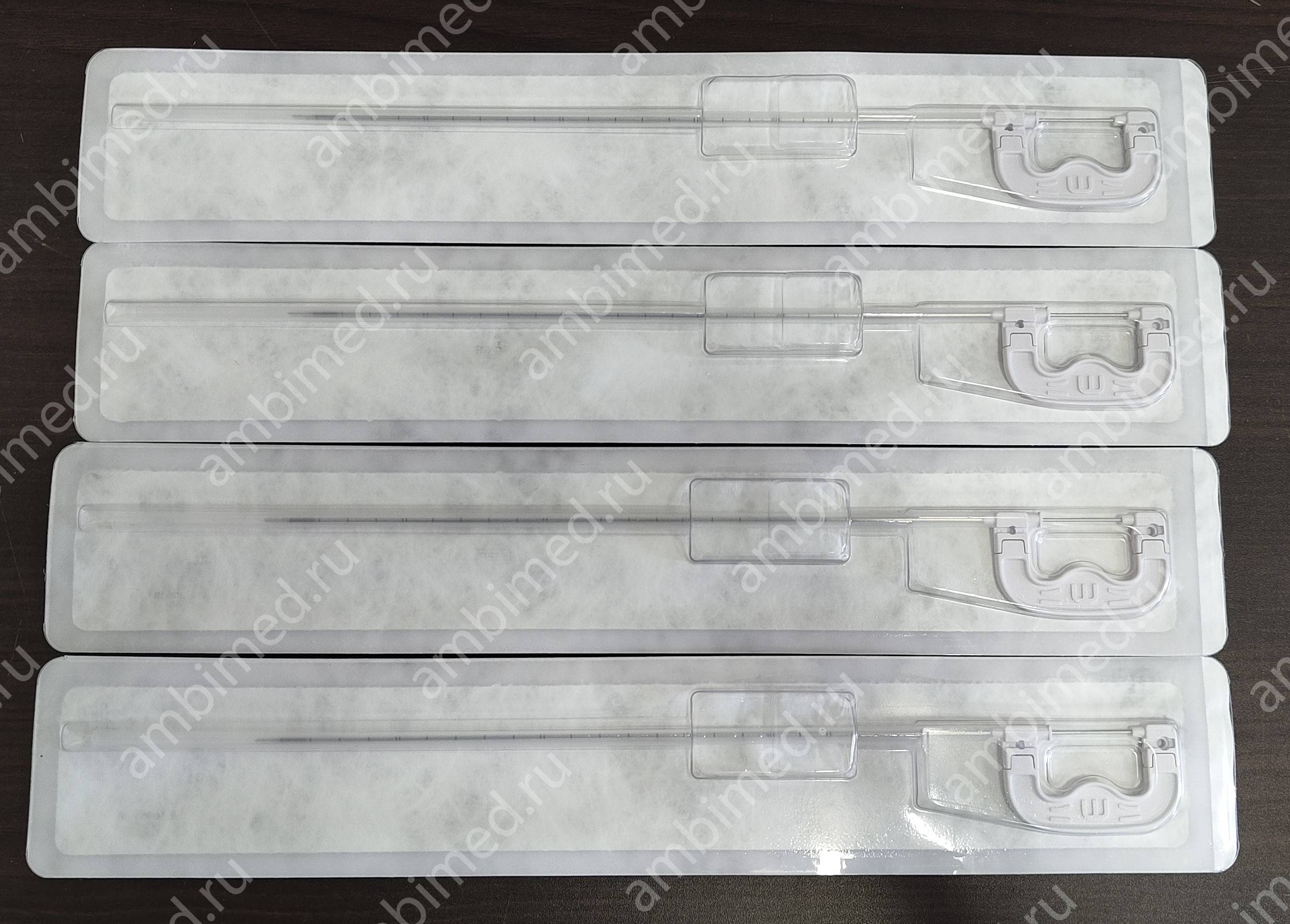 - гравированы сантиметровой шкалой с контрольными отметками (шаг 5 см) и оснащены ограничителем глубины погружения, что упрощает процедуру биопсии;