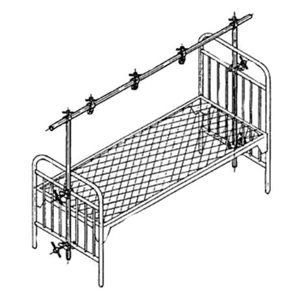 Дополнительная оснастка продольной рамы для кровати из нержавеющей стали: дополнительные приставки для борьбы с пролежнями после спинальной травмы; наборы гамаков и поясов для консервативного врачевания различных переломов тазового отдела позвоночника.