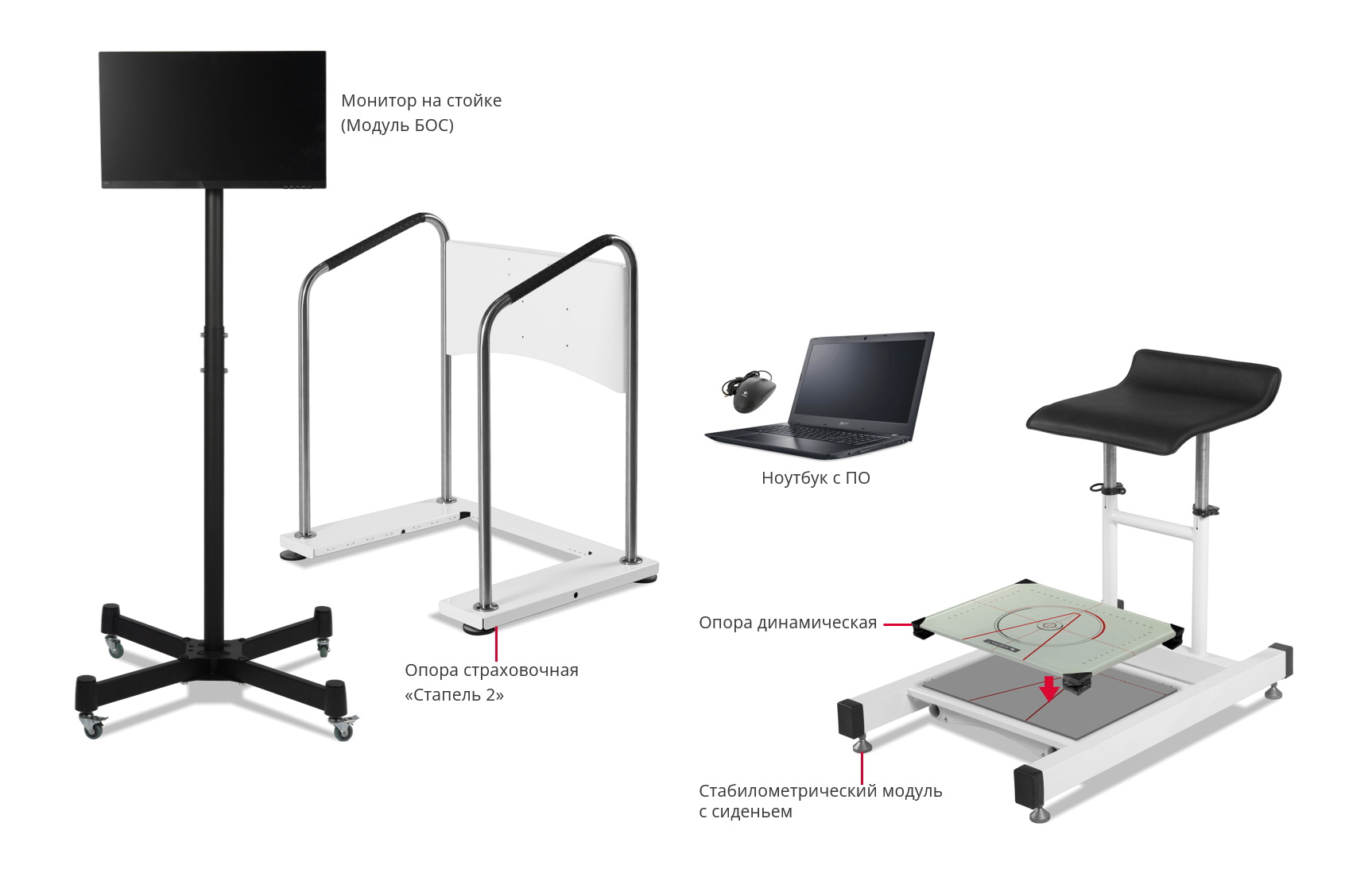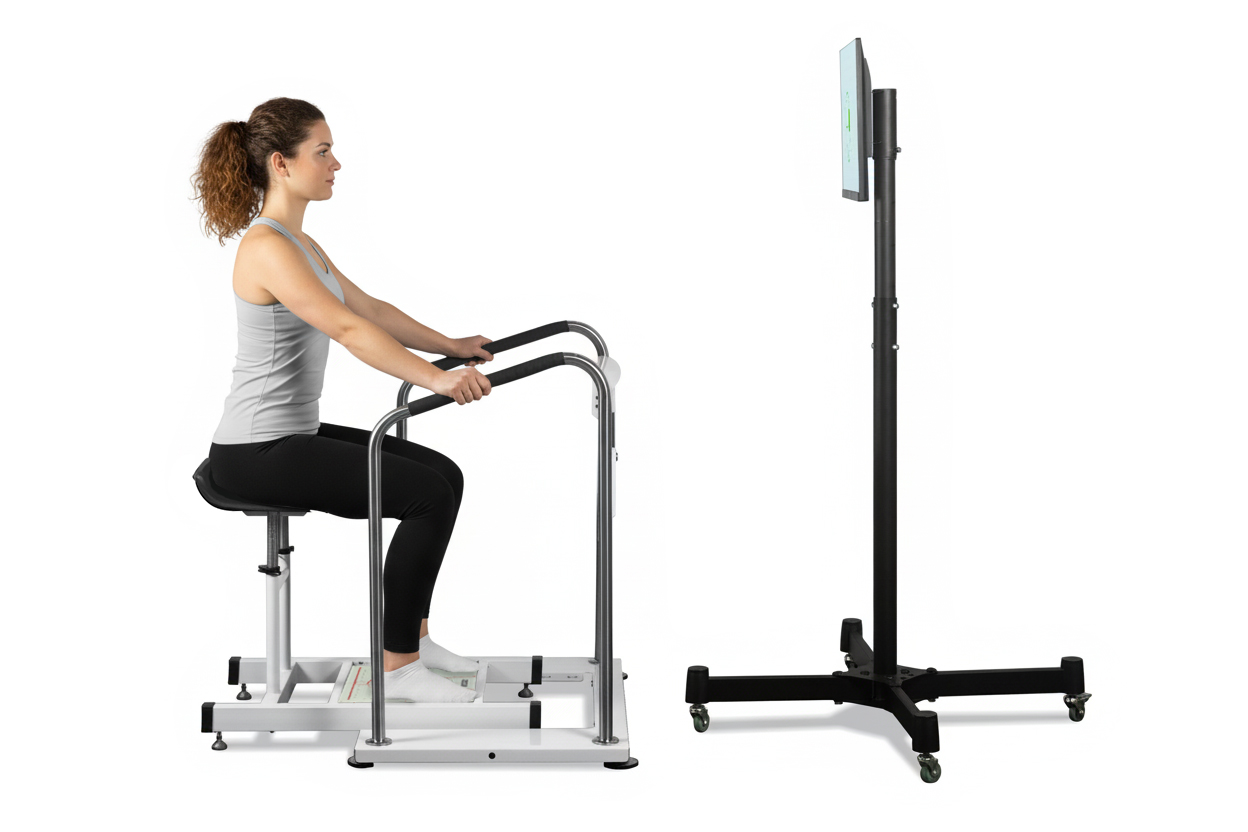 Платформа имеет сидение, что позволяет проводить исследования позы, восстановительные и тренировочные процедуры в положение сидя и стоя, позволяет контролировать нагрузку пациентов, с нарушением вертикальной устойчивости.