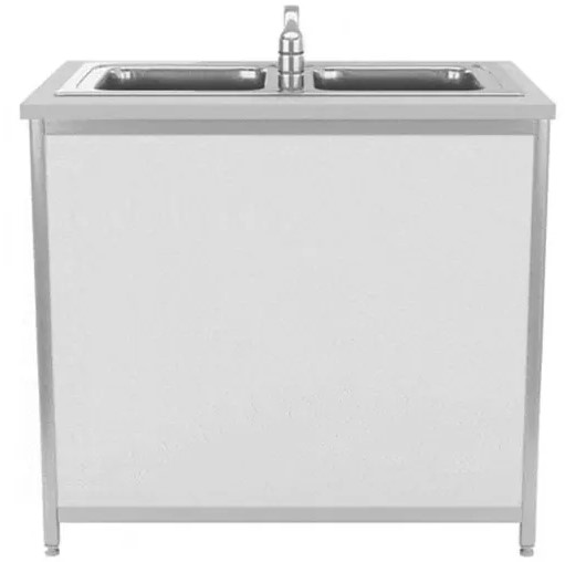 Мойка — двухчашевая, врезная из нержавеющей стали, комплектуется смесителем и сифоном