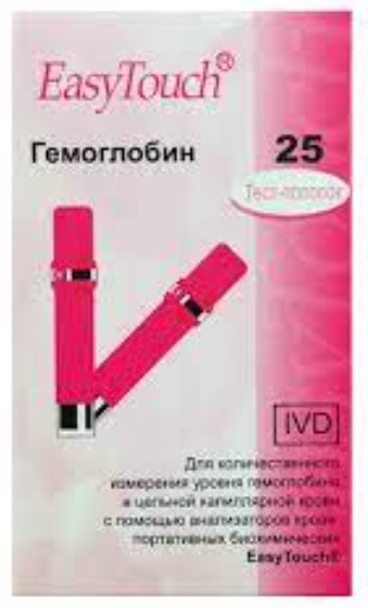 Тест-полоски ИзиТач (EasyToch) для определения гемоглобина в крови. В упаковке 25 тест полосок. Только для прибора EasyTouch GCHb. Время измерения гемоглобина в крови - 6 секунд.